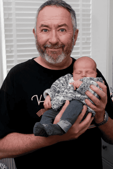 Here’s a delightful photograph of David with a new-born Arlo, which he shared in the team update in July 2021. And below that is a more recent picture of all three of them, taken this Christmas.